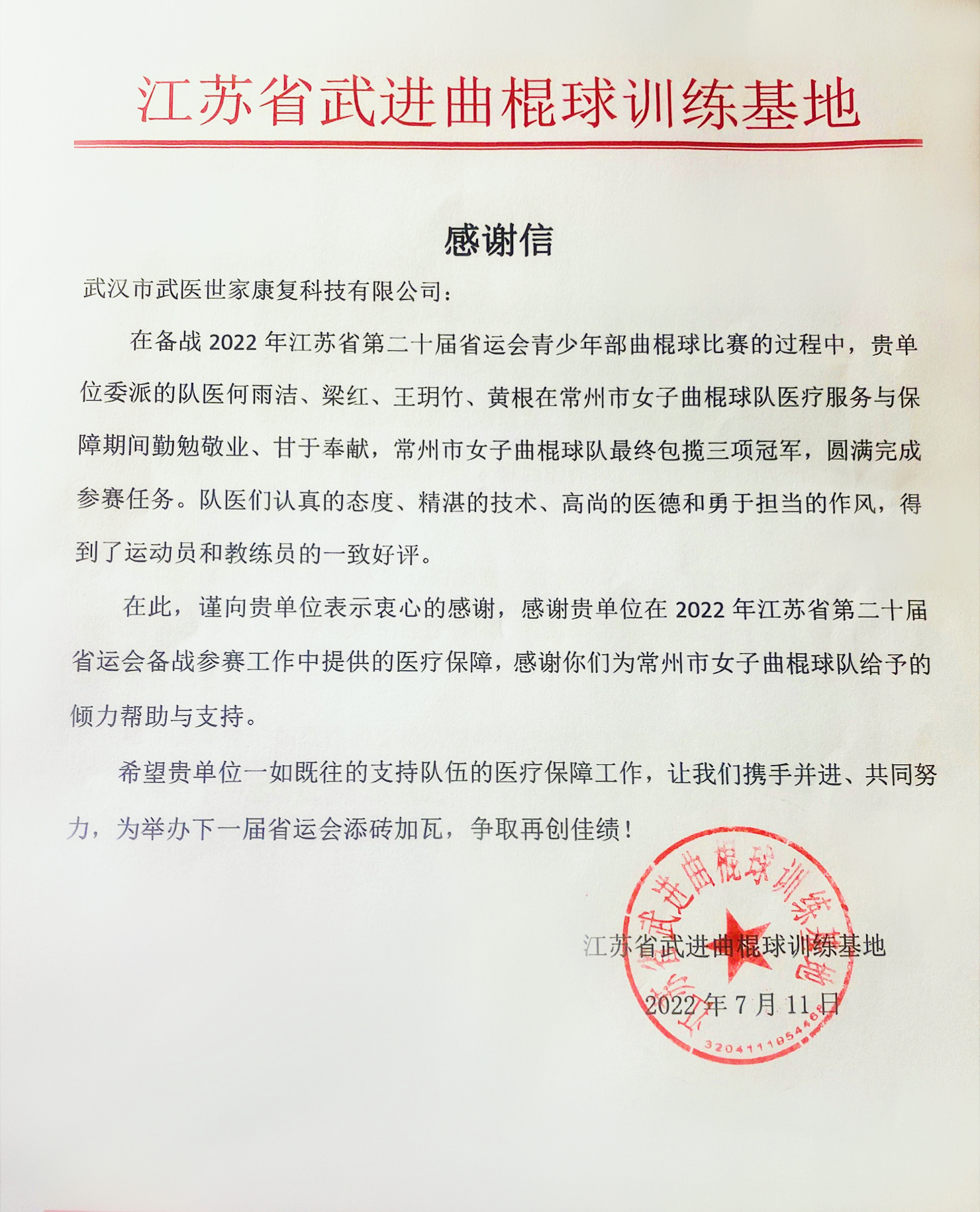 武汉市洪山区团结大道1060号好燃时刻智慧体育公园1号楼1层101号武医世家运动康复中心