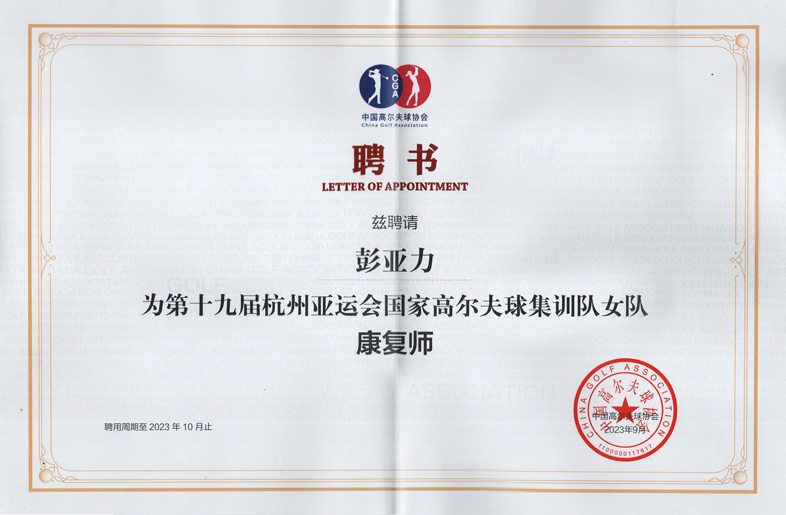 彭亚力-第十九届杭州亚运会高夫球集训队女队康复师
