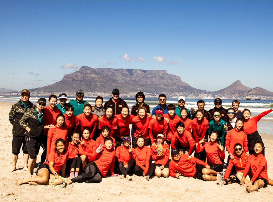 扈盛教授与国家女子曲棍球队全体队员、教练员在南非桌山下合影