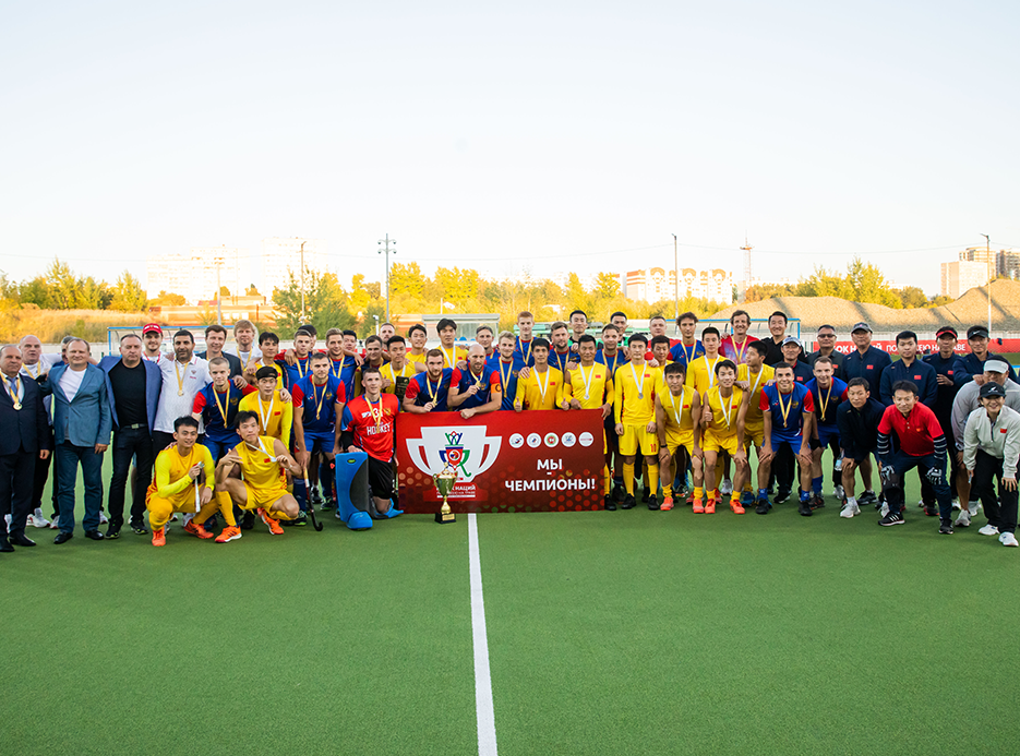 康复师胡振宇保障国家男子曲棍球队在俄罗斯参加俄罗斯国家杯比赛的合影