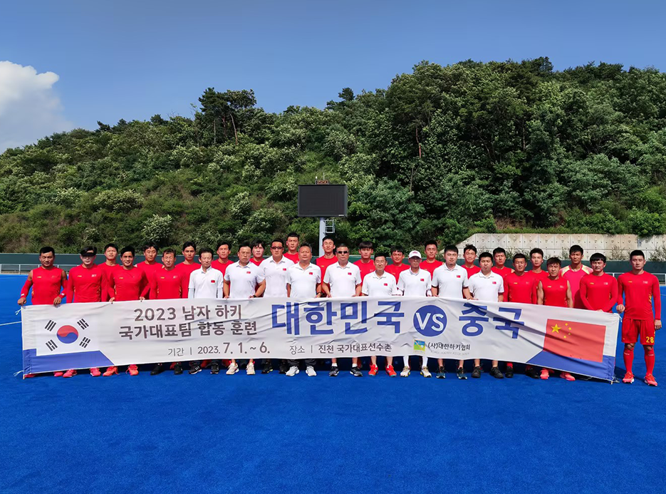康复师胡振宇保障国家男子曲棍球队与韩国进行交流赛期间的合影