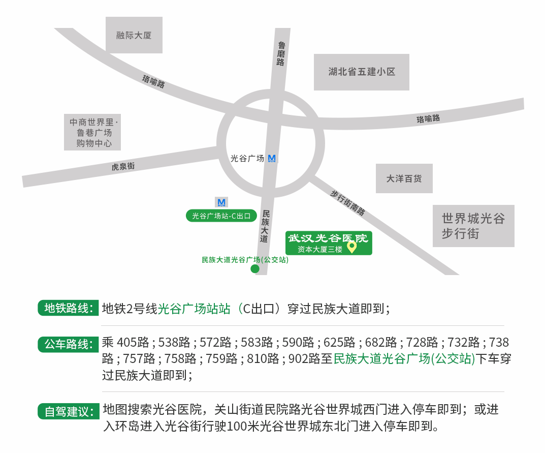 武汉市东湖新技术开发区高新大道777号政务服务中心光谷医院医务室(1号楼南四门社会餐厅对面)